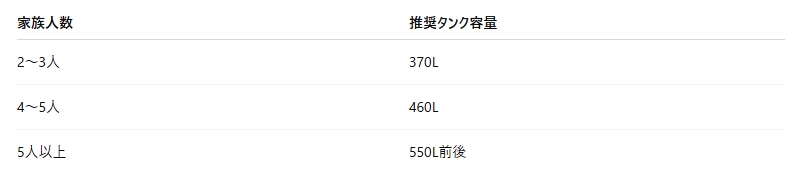 ▼ ③ 家族人数に合わせてタンク容量を選ぶ